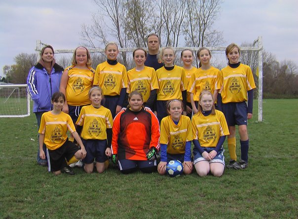 Whitney has played on approximately 15 different teams in the last ten years. She has played both co-ed and all girls, indoor and outdoor, home team and club/travel team, AYSO, USSF, MMYSL, and on Junior Varsity for her high school. I don't have team photos from every single team, but you get the idea below. These teams are not in any specific order and Whit is normally the one smack in the middle because she is the keeper (hence the name ... Mine's a Keeper). The first photo is about her 2nd year playing.